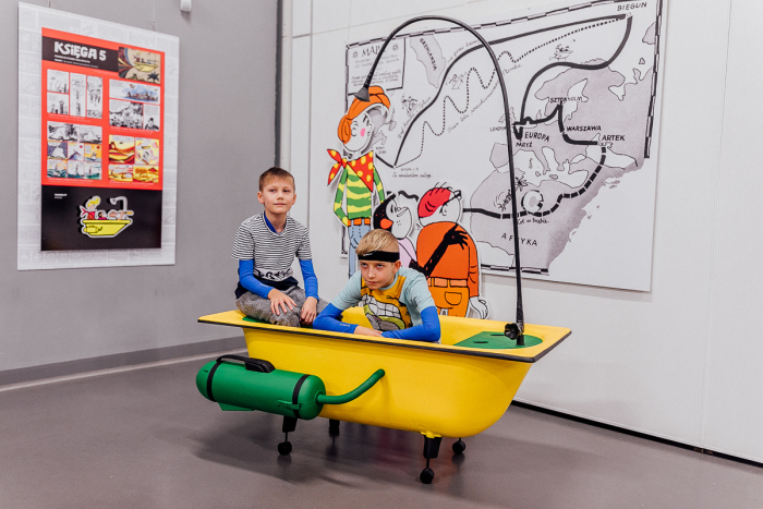 Fotografia główna do tego tytułu wystawy: Wystawa „Świat Tytusa, Romka i A’Tomka – Instytut Wszechzbytków profesora Talenta” w Centrum Historii Zajezdnia we Wrocławiu w 2018 r. Wernisaż. Foto. Edward Puławski