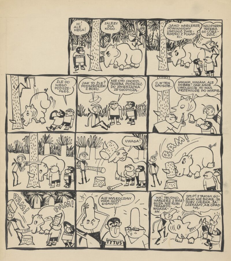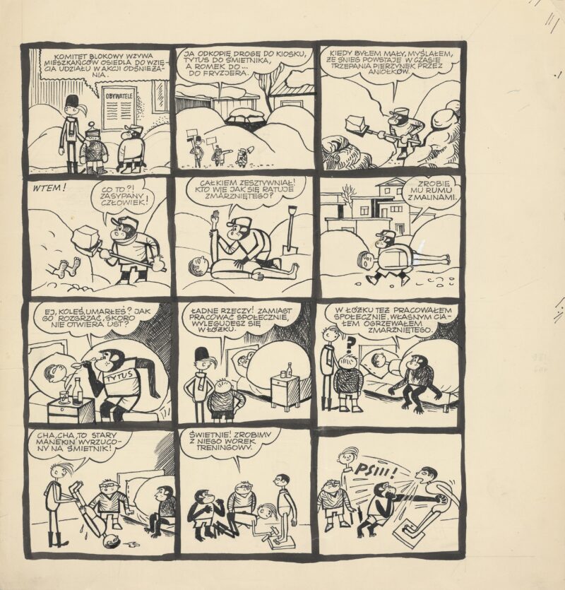 Lecz wszystko, co najważniejsze dla poważnej kariery Papcia Chmiela, zaczęło się w październiku 1957 roku. Gdyby nie pierwszy radziecki sputnik, wystrzelony wówczas w kosmos, czytelnicy „Świata Młodych”, gdzie grafik pracował, nie poznaliby Tytusa. Bo dopiero wtedy, gdy radziecki obiekt fruwał już po orbicie, można było fantazjować o podboju wszechświata. Do tej pory podbój kosmosu kojarzył się władzom pejoratywnie, bo ze „zgniłym” Zachodem. Redakcja gazety zezwoliła na publikację komiksu Papcia o kosmicznych przygodach Romka i A’Tomka, do których, od drugiego odcinka, dołączyła małpka Tytus. Komiks spodobał się nie tylko czytelnikom, ale i dygnitarzom, bowiem telefon z kierownictwa Wydziału Prasy Komitetu Centralnego, nakazywał: „- To nawet pożyteczne. Można kontynuować!”