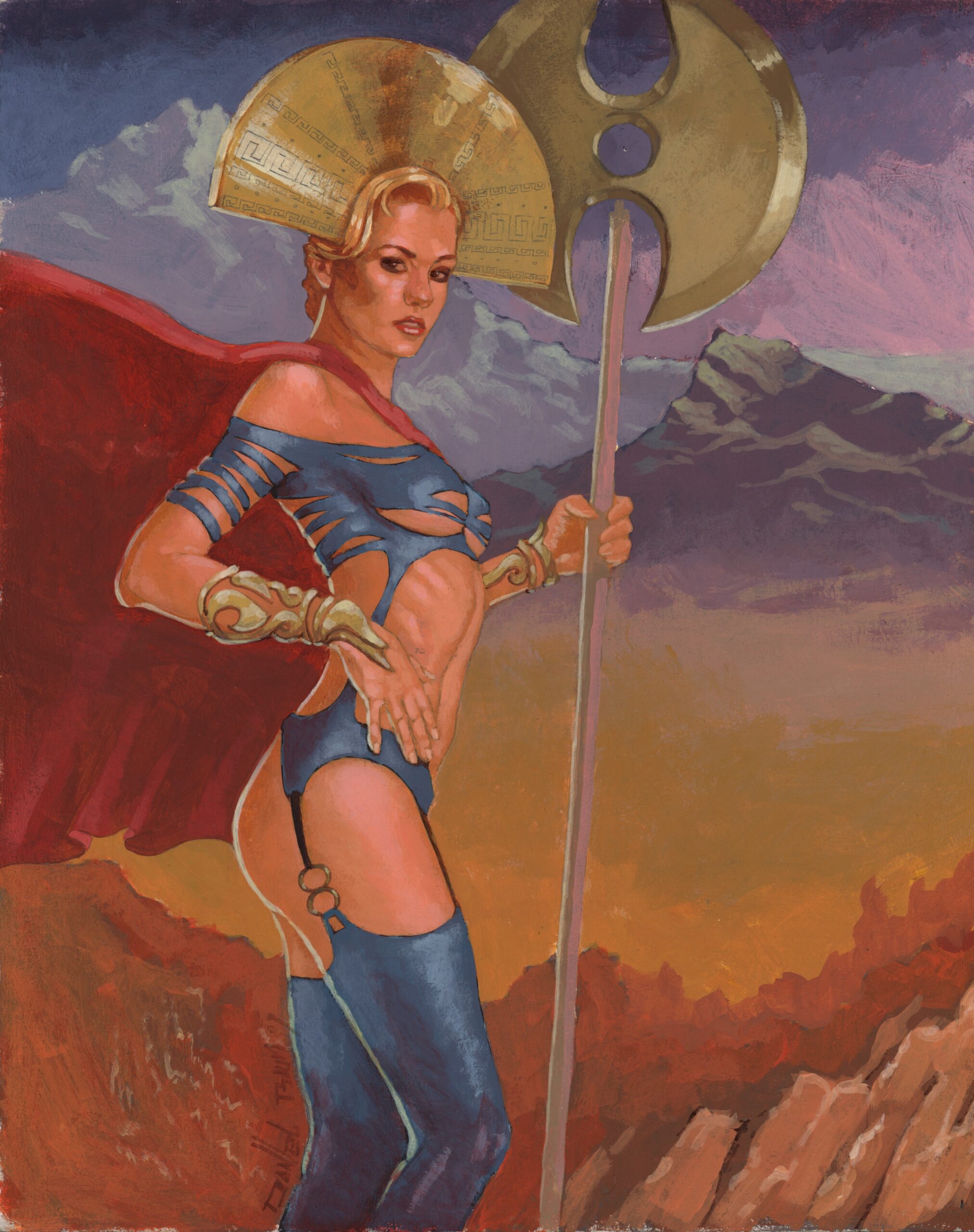 Obraz skomponowany na bazie ulubionego motywu artysty – postaci szukającej kontaktu z oglądającym. Również kanoniczne dla jego malarstwa jest zastosowana tu kolorystyka, a także niknący w niedookreślonej gęstej poświacie, niby smogu, drugi plan. Jak podaje sam autor, jest to ilustracja malowana dla przyjemności, nigdy nie publikowana.