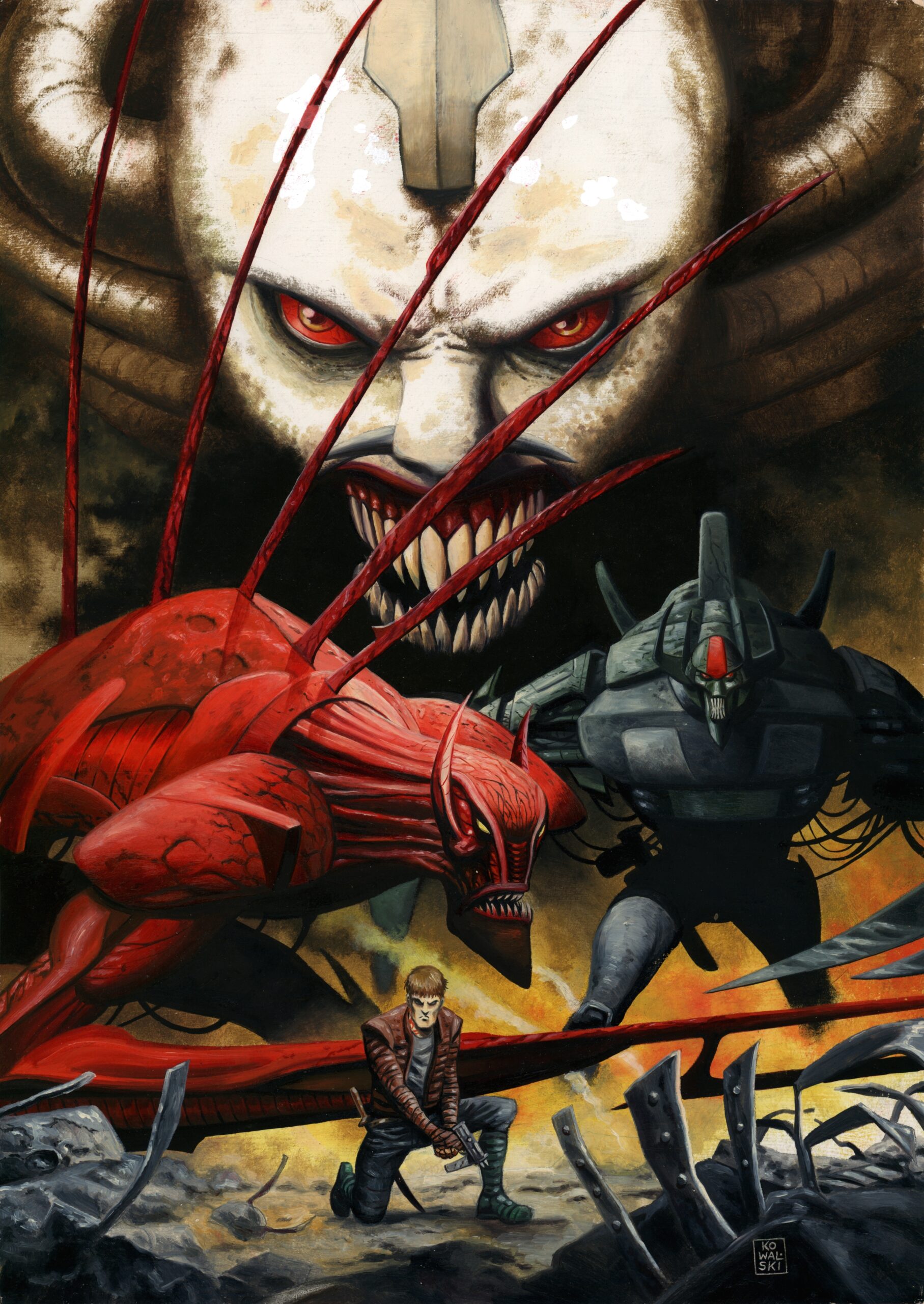 Prezentujemy wyjątkową planszę w historii polskiego komiksu. To okładka pierwszego tomu „Gaila”. Można powiedzieć, że ta konkretna praca to początek drogi artysty na profesjonalnym rynku. To był swego rodzaju oficjalny start. Co do technicznej strony to, jak potwierdza sam autor: Praca jest utrwalona cieniutką warstwą werniksu, więc farby nie powinny blaknąc z czasem. Wyszło naprawdę ciekawie, a sam komiks zwracał uwagę czytelników na półce w sklepie.