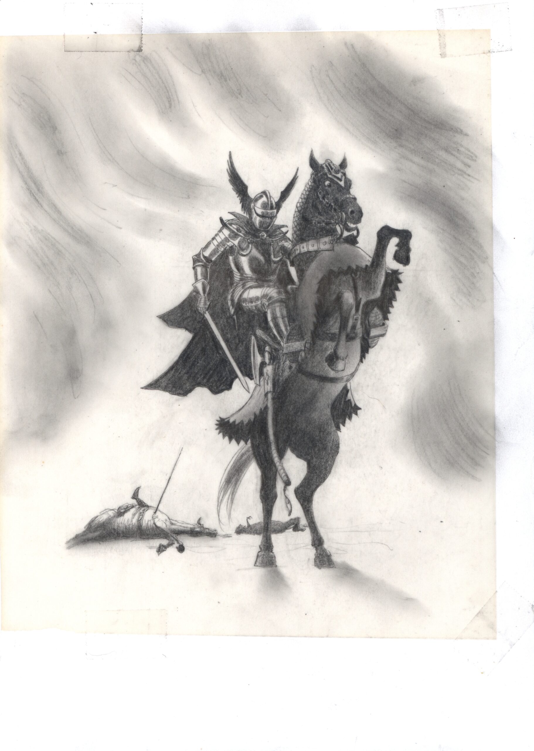 Tytuł: „Rycerz” (umowny), ilustracja do „Wiedźmina” (wersja szkicowa)