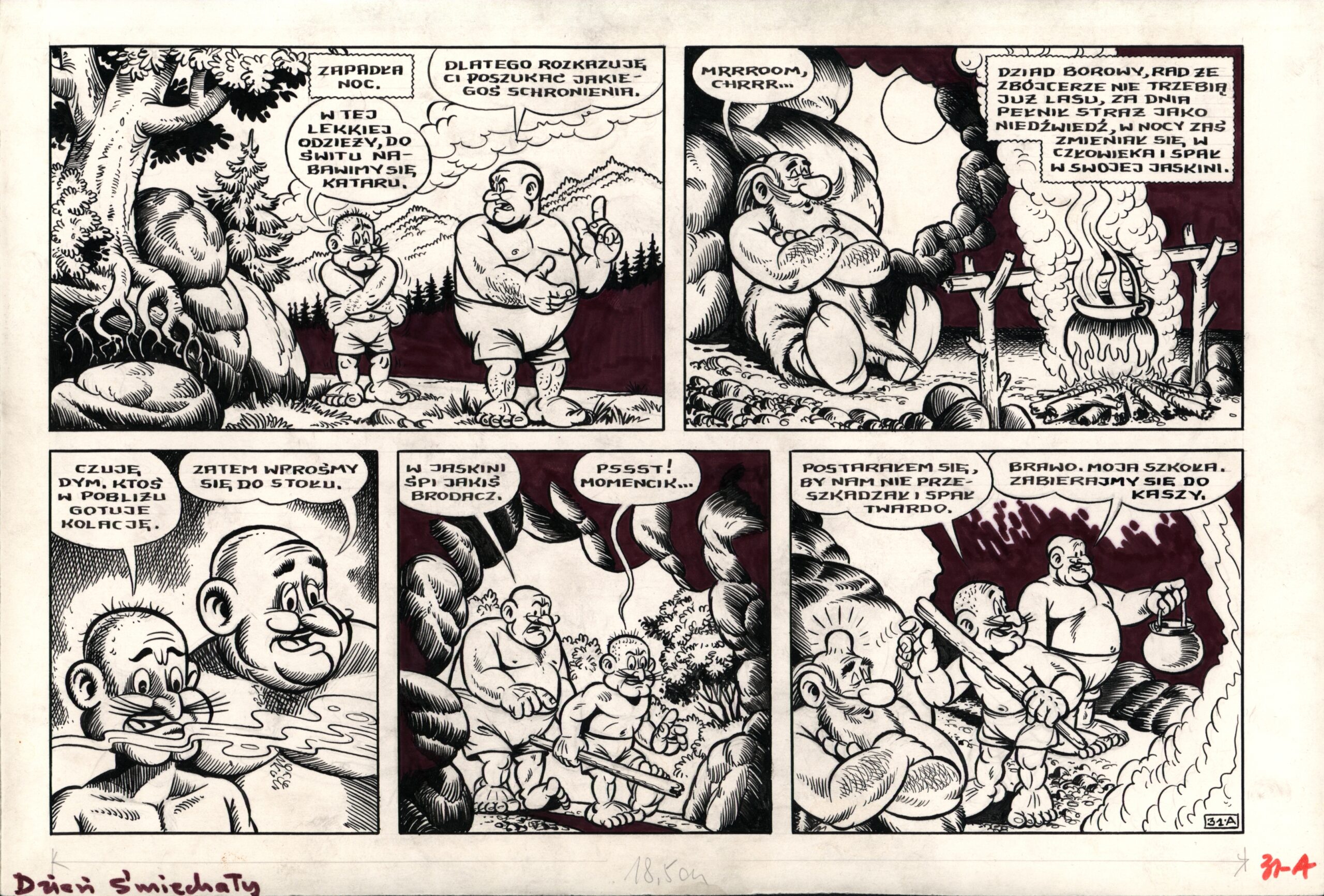 Strona nr 31A komiksu. Premierę komiks „Dzień Śmiechały” miał w gazecie „Świat Młodych”, nr 26/1983.
