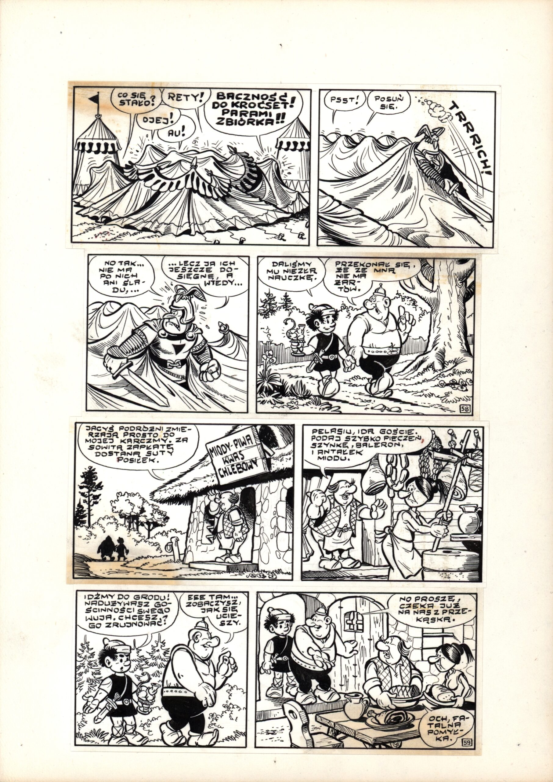 To pierwszy komiks o przygodach Kajka i Kokosza. Warte uwagi jest występowanie na planszy tytułowego złotego pucharu, co podnosi wartość kolekcjonerską pracy. Poza tym mamy tu jeden ze słynniejszych cytatów z tego komiksu, napis informujący nad wejściem do karczmy: „Miody – Piwa, Kwas Chlebowy”. No i jak często u Christy – zabawne scenkę.