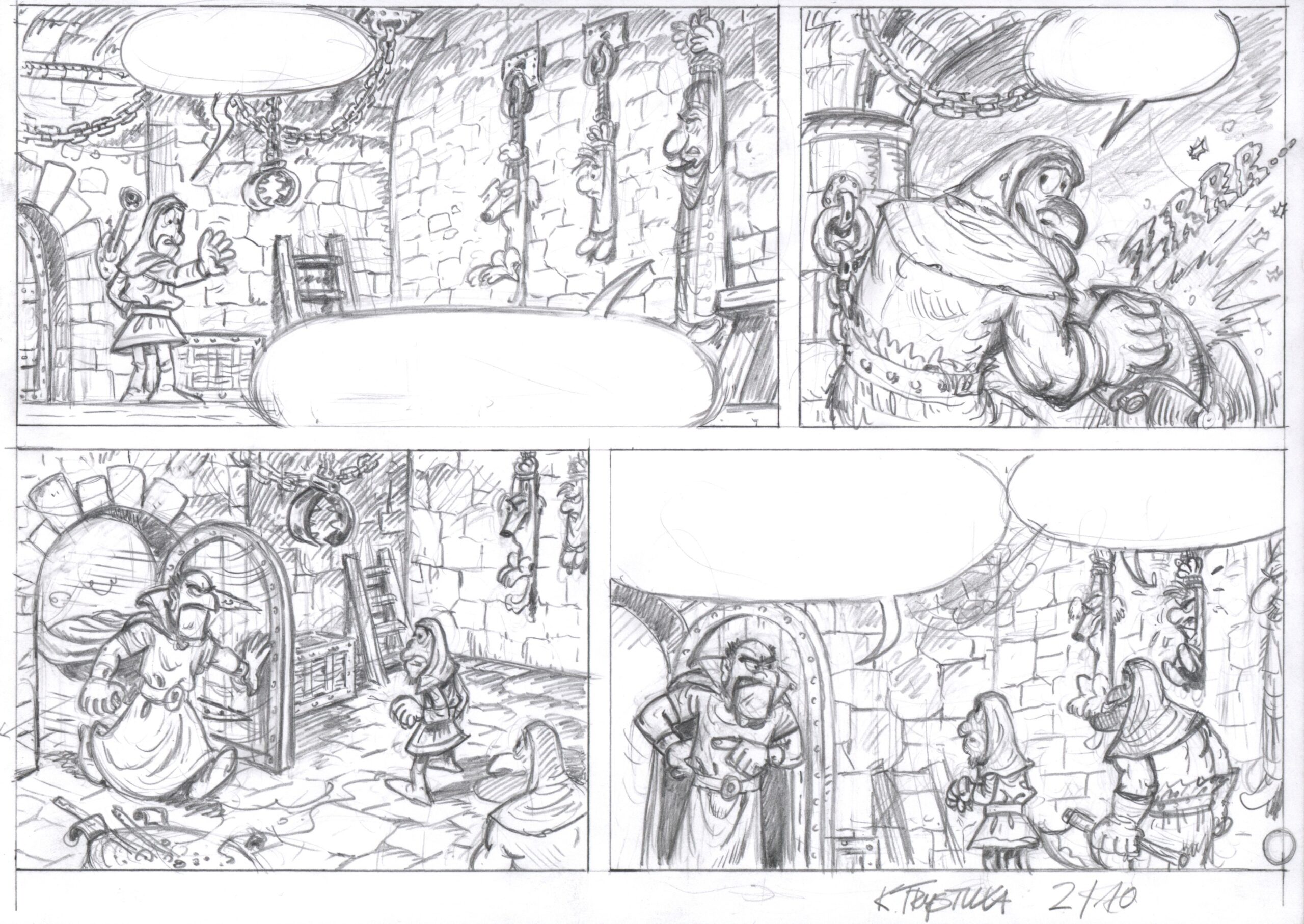 Praca stanowi komplet dwóch plansz (A i B), będących łącznie pełną stroną komiksu. Zainteresowanych posiadaniem tej strony w wersji w tuszu, odsyłamy do sprawdzenia jej dostępności wśród prac tego autora.