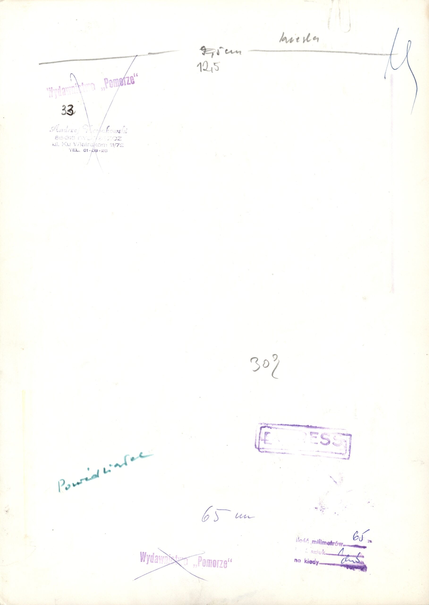 Na rewersie planszy m.in. zapiski redakcyjne i pieczęcie wydawnicze.