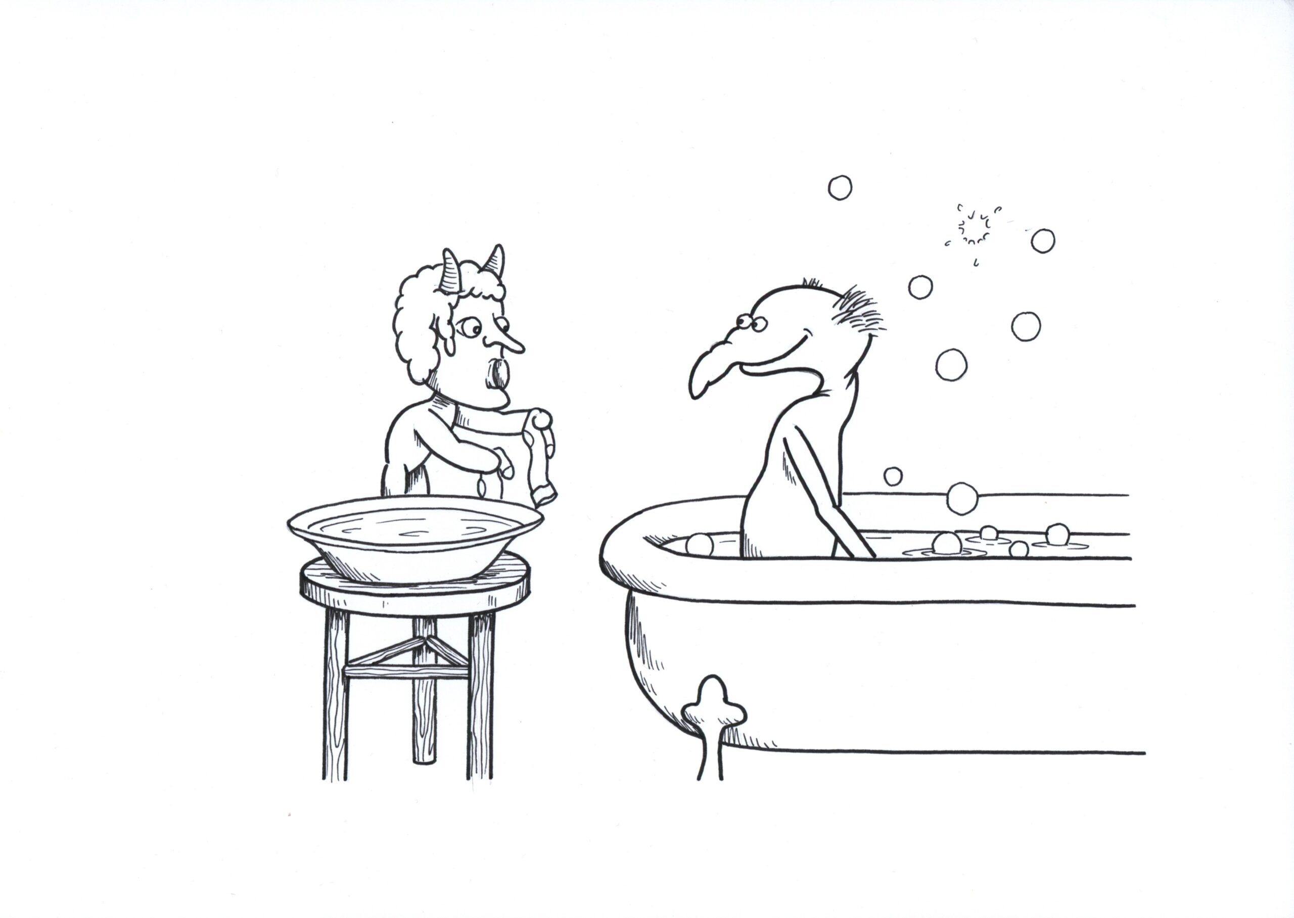 Temat skarpetek, choć może niekoniecznie związany akurat z postacią komiksowego Grabarza, chodził za autorem od dzieciństwa, kiedy to na lekcji religii usłyszał jak ksiądz skarżył się na swój ciężki los, gdyż musiał samemu sobie prac skarpetki… Pomysł wykonania skarpetek z głównym bohaterem wymyślonym lata później przez Śmiechosława, spełnił się dzięki firmie GEEK SOCKS, producentowi skarpetek, dla których artysta zaprojektował wzór z postaciami ze swoich komiksów. Plansza, którą wystawiamy jest specjalnie dedykowaną reklamą dla tego produktu (na której widzimy właśnie księdza…).