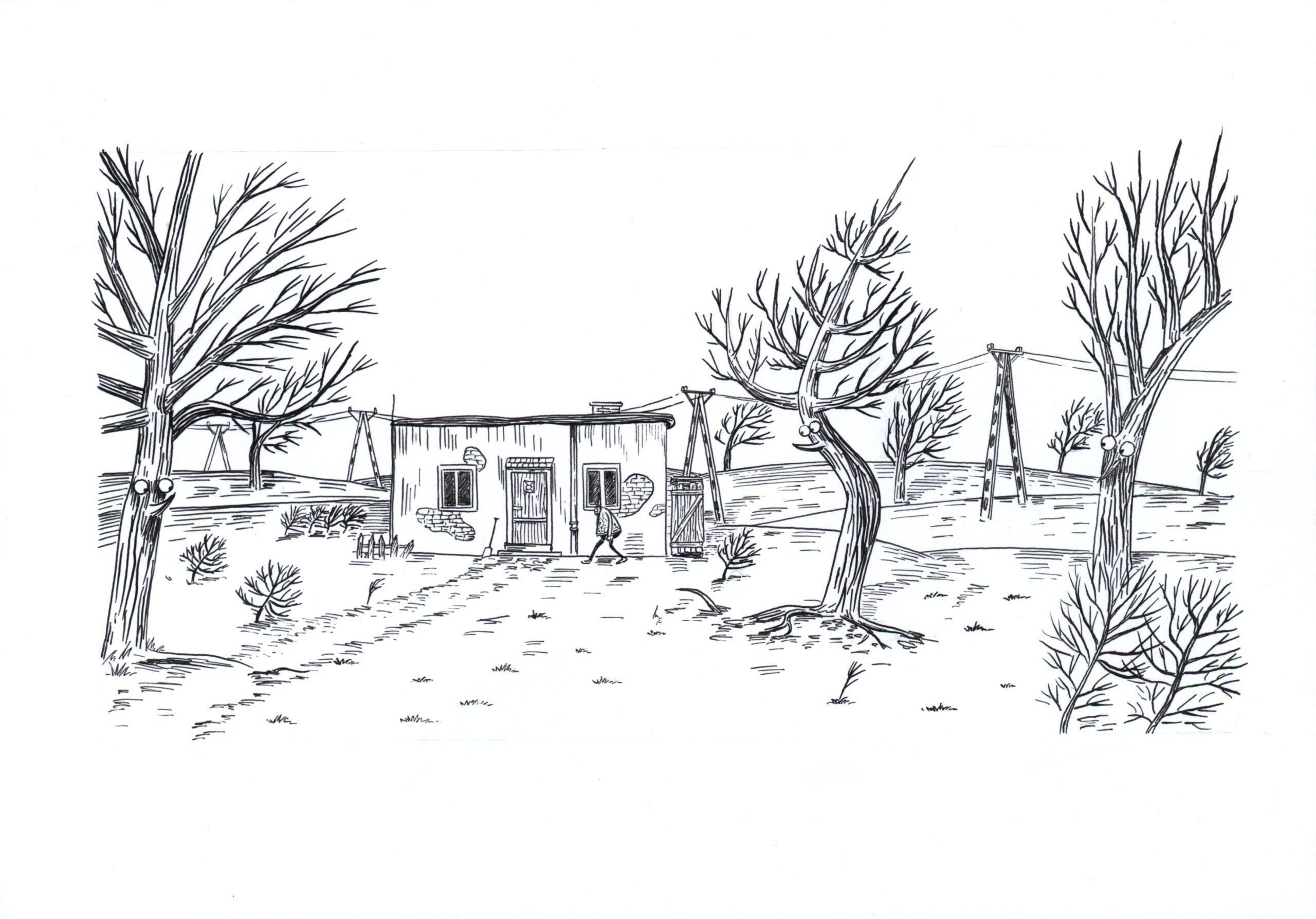 Pierwsze kadry otwierające przygody Grabarza, najważniejszego bohatera stworzonego przez Śmiechosława. Album wydała Pracownia Plastyczna w 2018 r.
