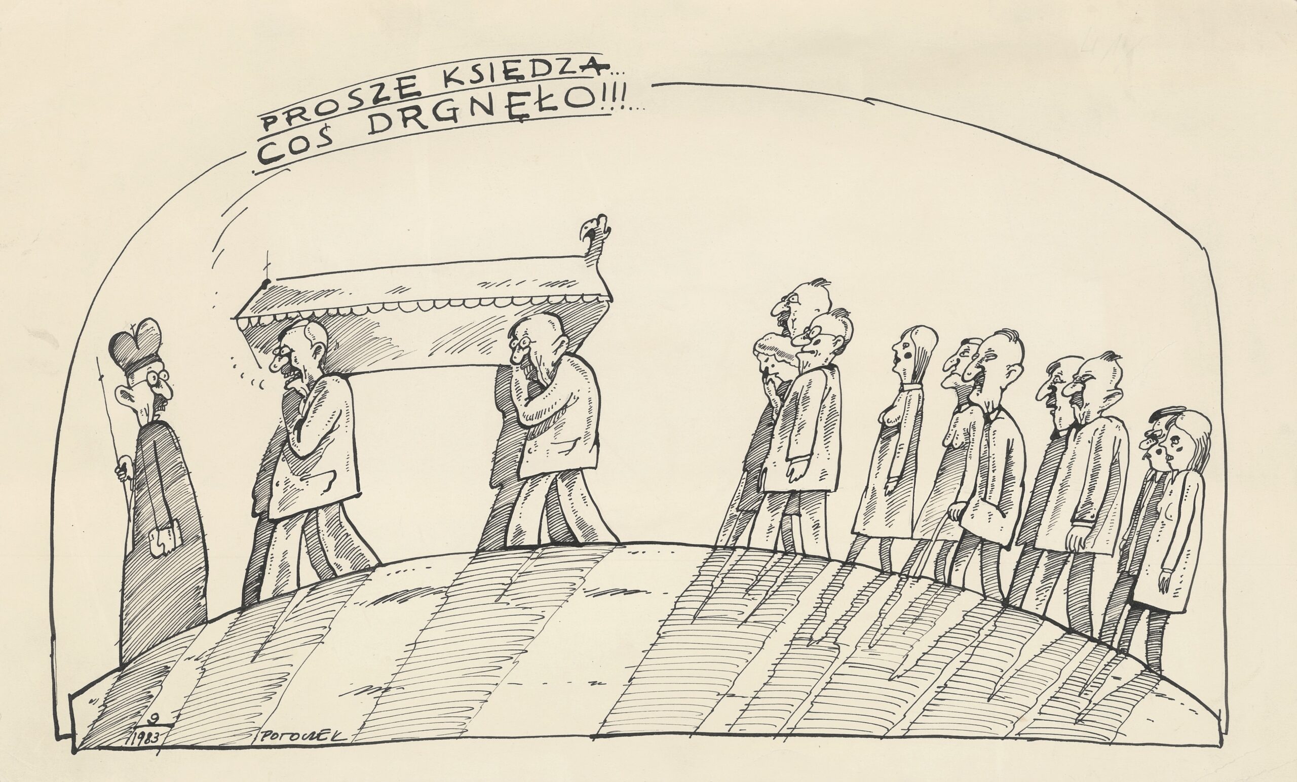Proszę księdza… Coś drgnęło!!!…, rysunek satyryczny