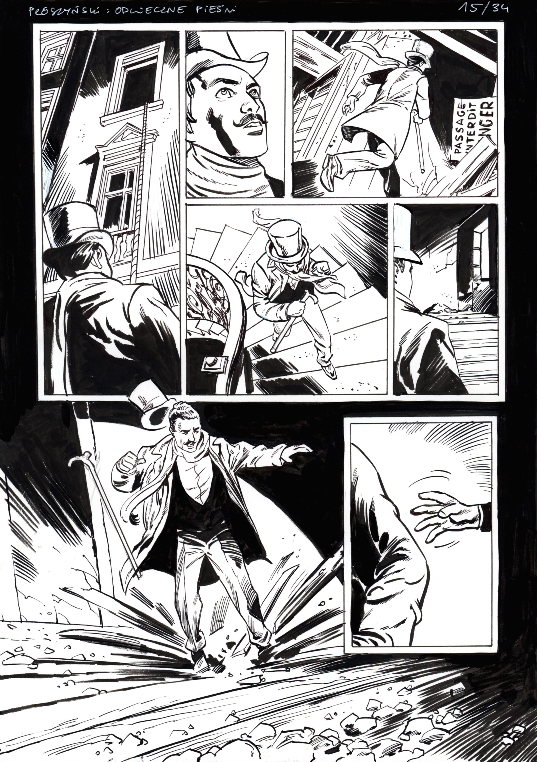 Rafał Szłapa ma świetny warsztat pozwalający mu na tworzenie prac w różnych mediach, technikach i stylach. Należy do niewielu polskich twórców docenianych za styl realistyczny. Plansza, którą przedstawiamy należy do tego nurtu. To opowieść historyczna o losach Kazimierza Prószyńskiego, wynalazcy, konstruktora kamer filmowych, a przede wszystkim pioniera kinematografii, znanego przede wszystkim za udaną pracą nad stabilizacją obrazu filmowego. Komiks nie jest jednak klasyczną biografią, a pełną akcji ciekawie opowiedzianą historią.