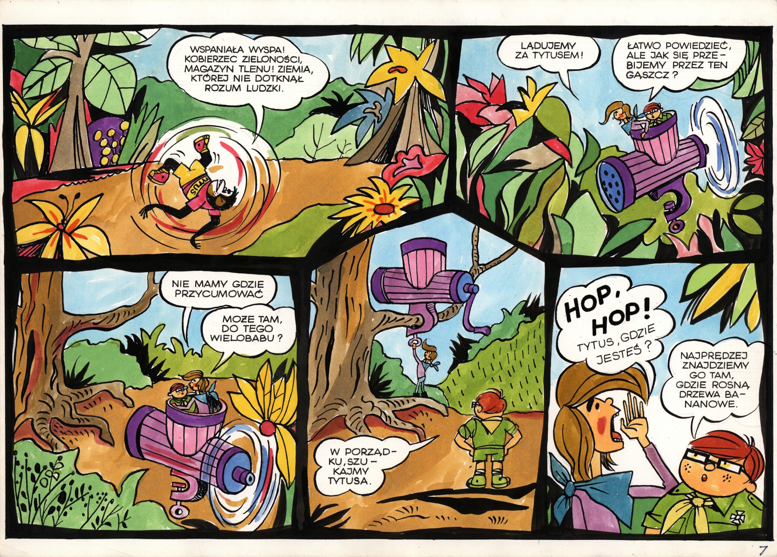 Plansza ta jest o tyle wyjątkowa, iż oprócz głównych bohaterów, występuje na niej (i to w kilku ujęciach) pojazd, czyli ikoniczny artefakt książeczkowych przygód Tytusa!