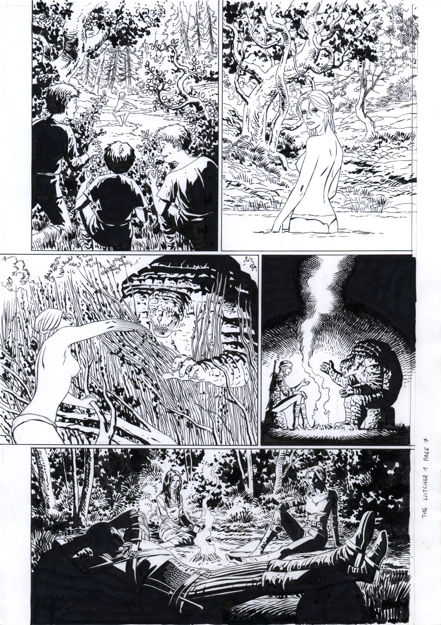 Plansza, którą prezentujemy jest częścią komiksu zatytułowanego „The Witcher: Curse of Crows”. Historia do scenariusza Paula Tobina. Przy przygotowywaniu serii nie obyło się bez kontrowersji z powodu nagiej Ciri. Tak oto sam Piotr Kowalski wspomina te sytuacje: Nie pozwolono mi na narysowanie jej od przodu. Trzeba było wobec tego zadowolić się innego typu ujęciem. W pierwotnej wersji pokazałem jej postać tyłem, ale widać było wystający zza ramienia sutek. Ile ja się nawalczyłem, by ten sutek zachować! W obu kadrach! W komiksach głównego nurtu, tego typu detale są powodem nieustannych przepychanek. Myślę jednak, że warto o nie walczyć, chociażby po to, by ruch (jak w trzecim kadrze) i układ ciała wyglądały naturalnie.